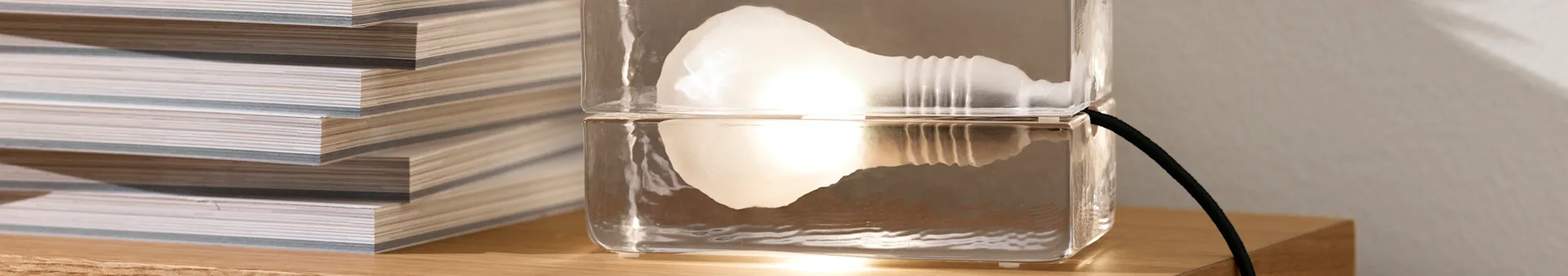 Die weltberühmten Block Leuchten erinnern mit ihrer Form an einen Eisblock und wurden bereits mehrfach mit Designpreisen ausgezeichnet.