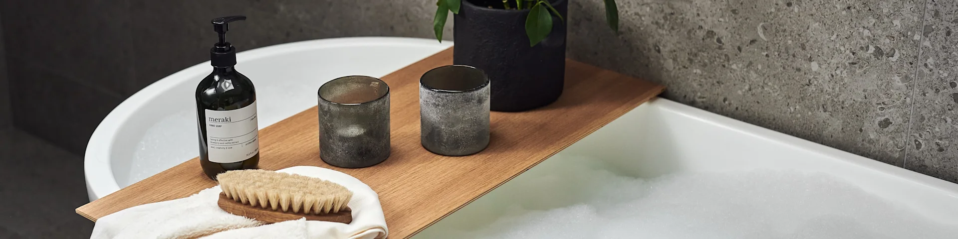 Hier finden Sie Inspirationen für Ihr Badezimmer – alles von stilvollen Badezimmerteppichen, kuscheligen Handtüchern, die dem Badezimmer ein luxuriöses Hotelgefühl verleihen, und funktionalen Badezimmeraccessoires wie praktischen Treteimern, edlen Seifenspendern und Flüssigseife. Lassen Sie sich von uns zur Gestaltung Ihres skandinavischen Traumbades inspirieren.