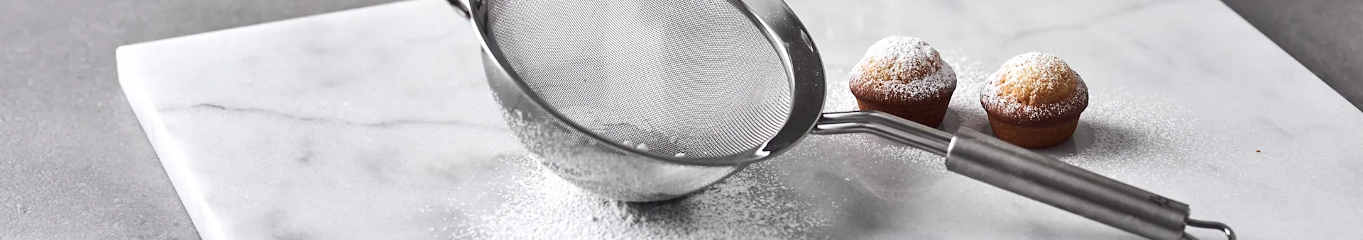 Besonders feine Siebe eignen sich hervorragend zum Sieben von Mehl bei der Herstellung von Brot oder Kuchen. Aber auch zum Zerstäuben von Puderzucker eignen sich feine Siebe hervorragend.