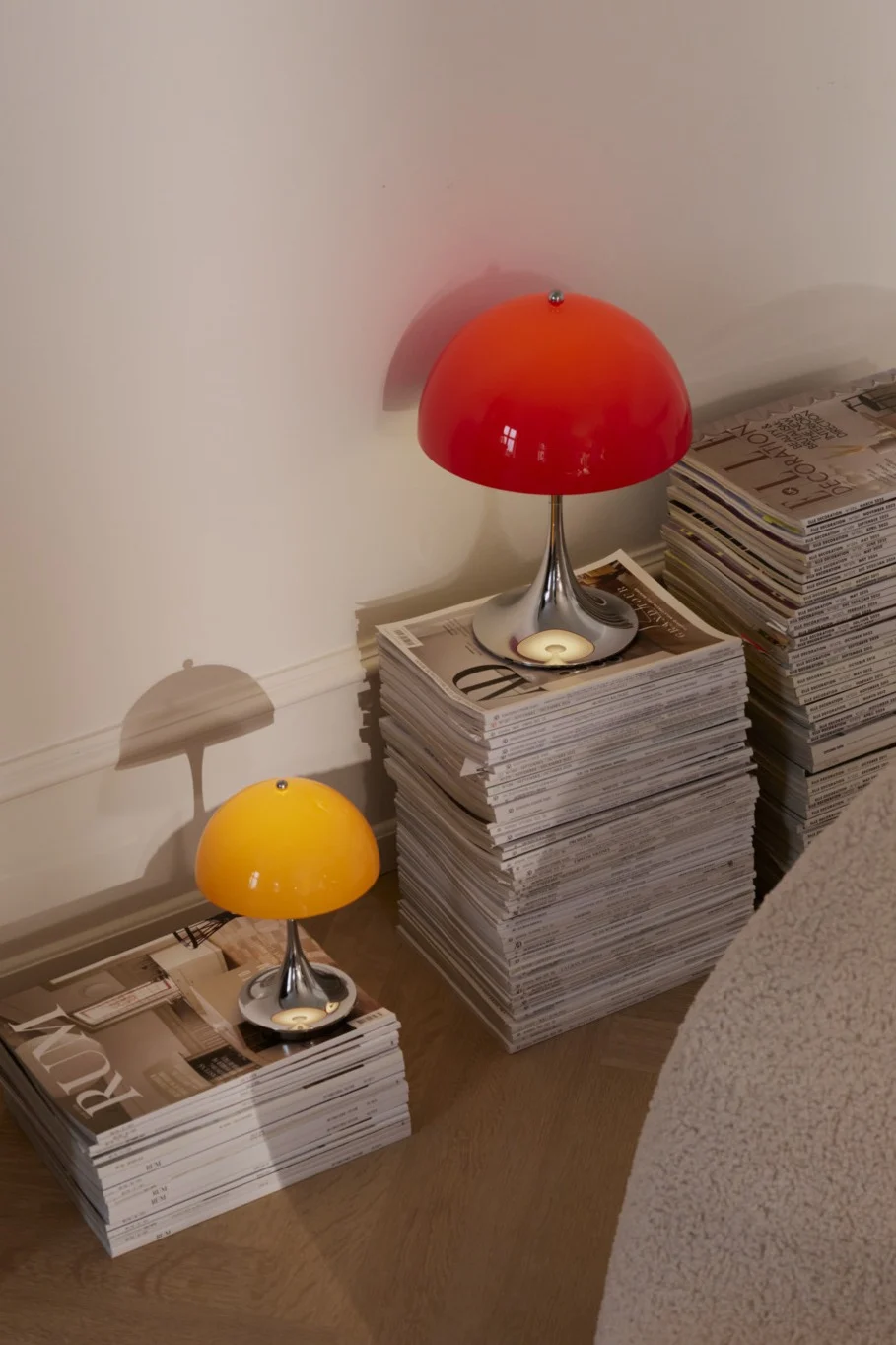 In den 80er Jahren war Verner Panton von geometrischen Formen fasziniert. Die neuen Kunststoffe gaben ihm künstlerische Freiheit und so konnte er seinen psychedelischen Vorstellungen von strukturloser Form und Farbgebung freien Lauf lassen. Der Künstler experimentierte viel mit verschiedensten Materialien und kreierte immer wieder neue Farbkonstellationen und rief so auch viele kontroverse Meinungen hervor.