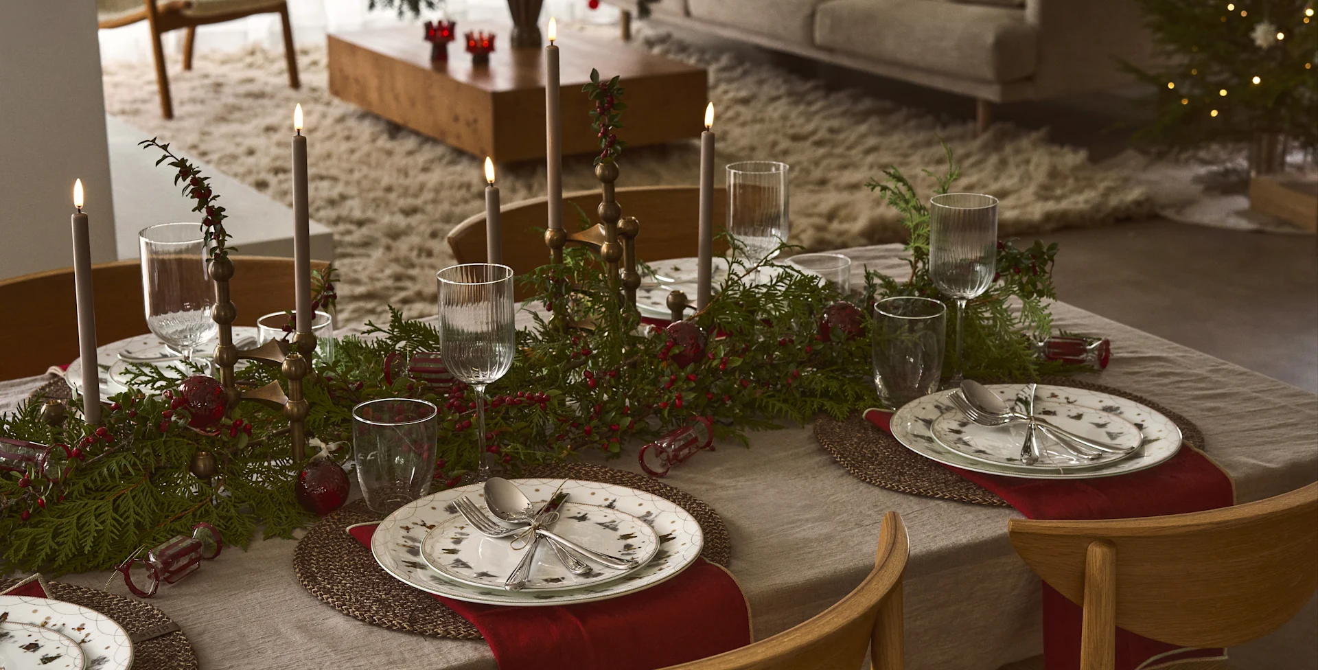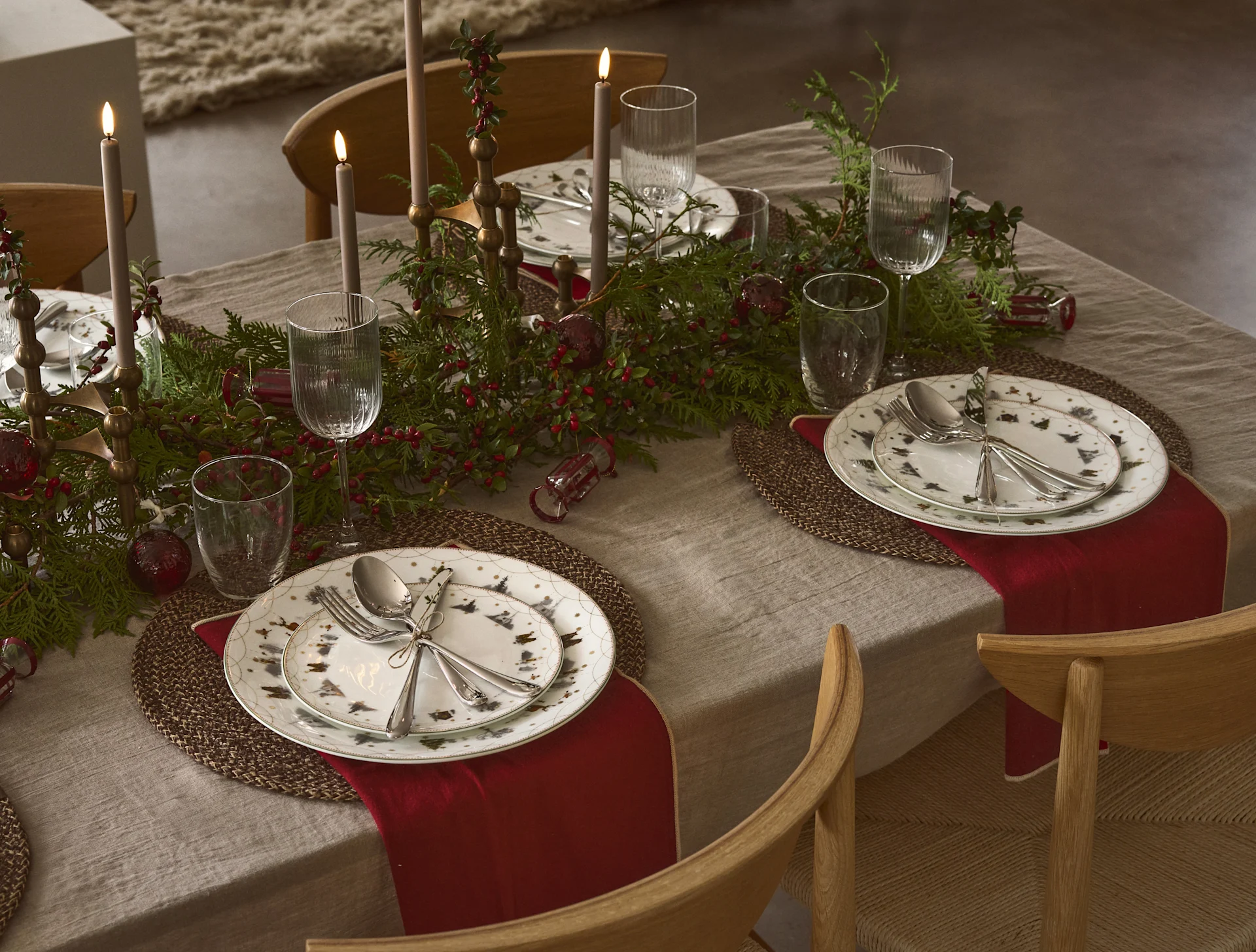 Ein beliebtes Weihnachtsgeschirr ist die Julemorgen Geschirrserie von Wik & Walsøe welche sich hervorragend für alle diejenigen eignet, welche ein klassisches nostalgisches Weihnachtsfest lieben. Eine weitere beliebte Weihnachtsgeschirrserie ist die Swedish Grace Winter Kollektion von Rörstrand, welche von der nordischen Winterlandschaft inspiriert wurde und einen dezenteren Ausdruck auf den Weihnachtstisch zaubert.