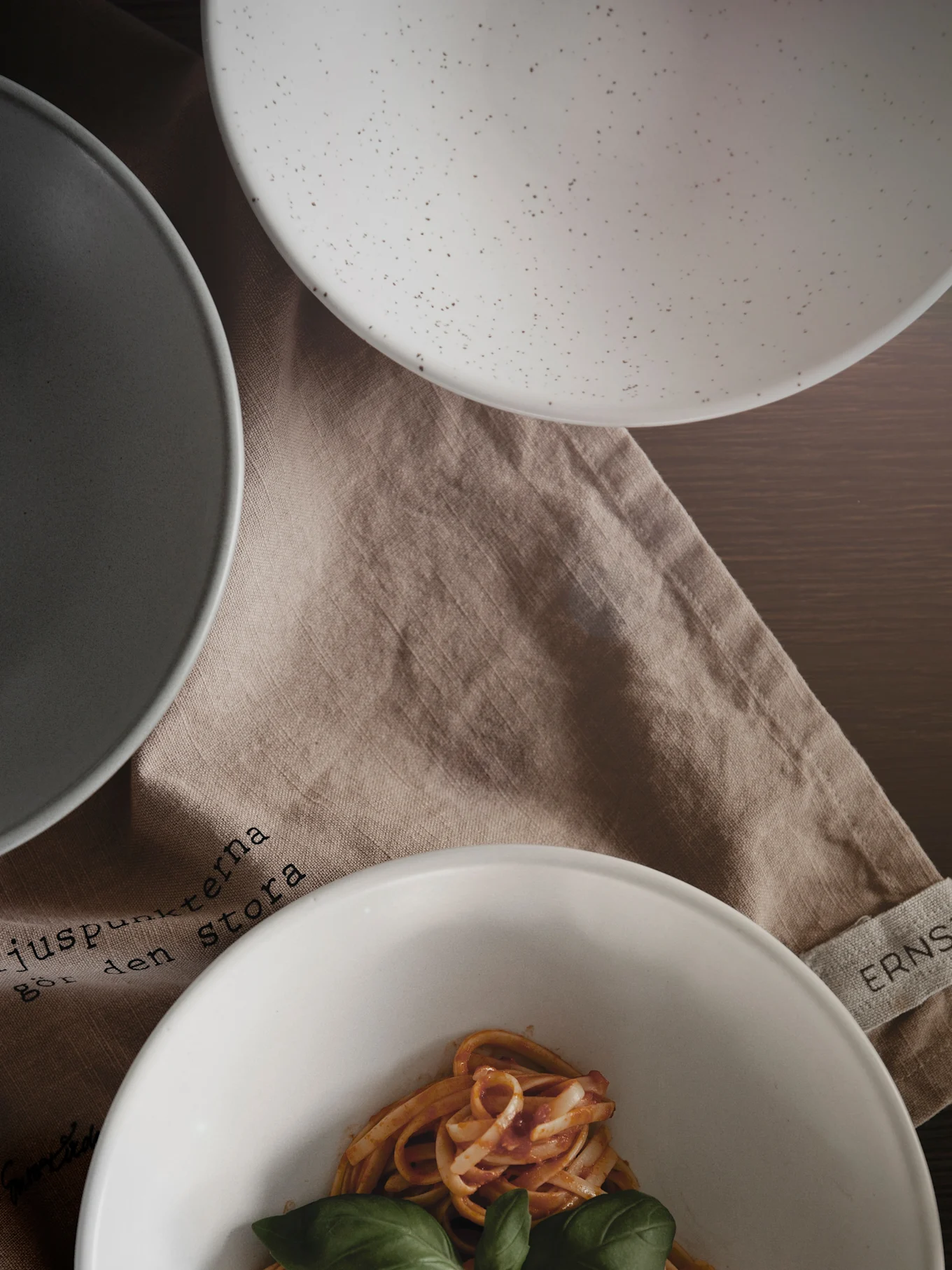 Wenn Sie schlichte Teller bevorzugen aber sich trotzdem etwas mehr Struktur wünschen empfehlen sich rustikale Teller. Die Nordic Sand und Nordic Sea Teller von Broste Copenhagen sind hervorragende Beispiele für rustikale Geschirrsets. Mit diesen Tellern lässt sich eine wunderschöne rustikale skandinavische Stimmung auf den Esstisch zaubern.