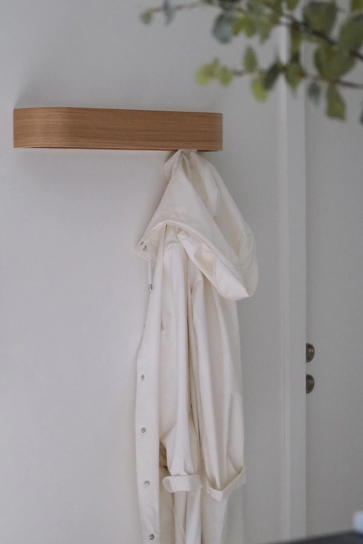 Nutzen Sie auch die Wände und gestalten Sie den kleinen Flur mit einem Schuh- und Hutregal von Essem Design um mehr Ordnung zu schaffen.
