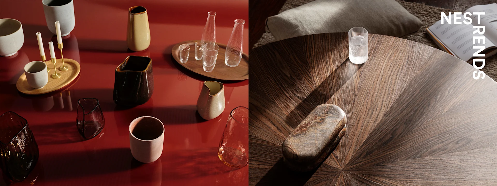 Der Boost Trend steht für Gemütlichkeit und wirkt mit seinen dunklen Braun- und Grüntönen in Kombination mit einer beigen Basis besonders elegant. Auch Wolle, Holz und geflochtenes Rattan sind Materialien, welche diesen Trend auszeichnen.
