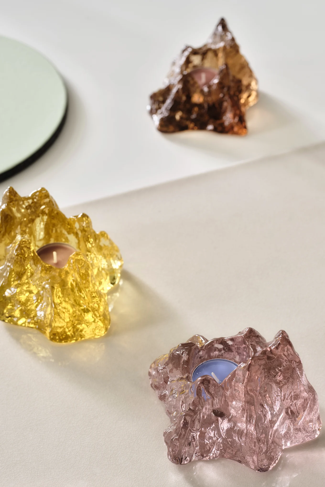 The Rock ist der Name der von Hanna Hansdotter entworfenen Serie als Hommage und Paraphrase von Anna Wolffs ikonischem Klassiker Snowball von Kosta Boda. Durch die Wiederverwendung der bekannten, unregelmäßigen Oberfläche ist The Rock ein Kunstwerk für sich. Die Laterne ist in verschiedenen Farben erhältlich, wobei das farbige Glas zusammen mit der dramatischen Silhouette etwas ganz Besonderes schafft.