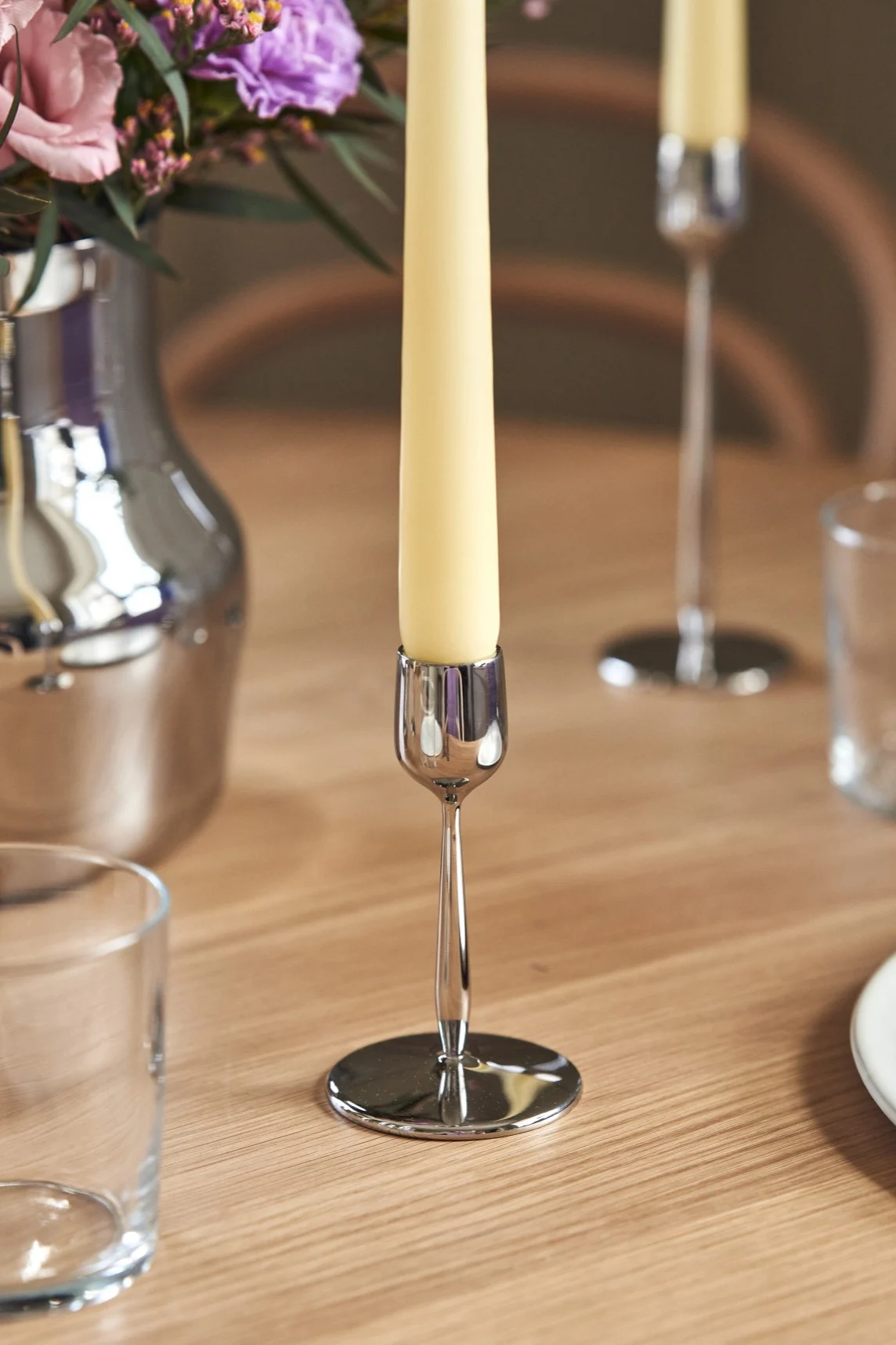 Eine Vase aus poliertem Edelstahl – für den eleganten Touch bei Tisch.