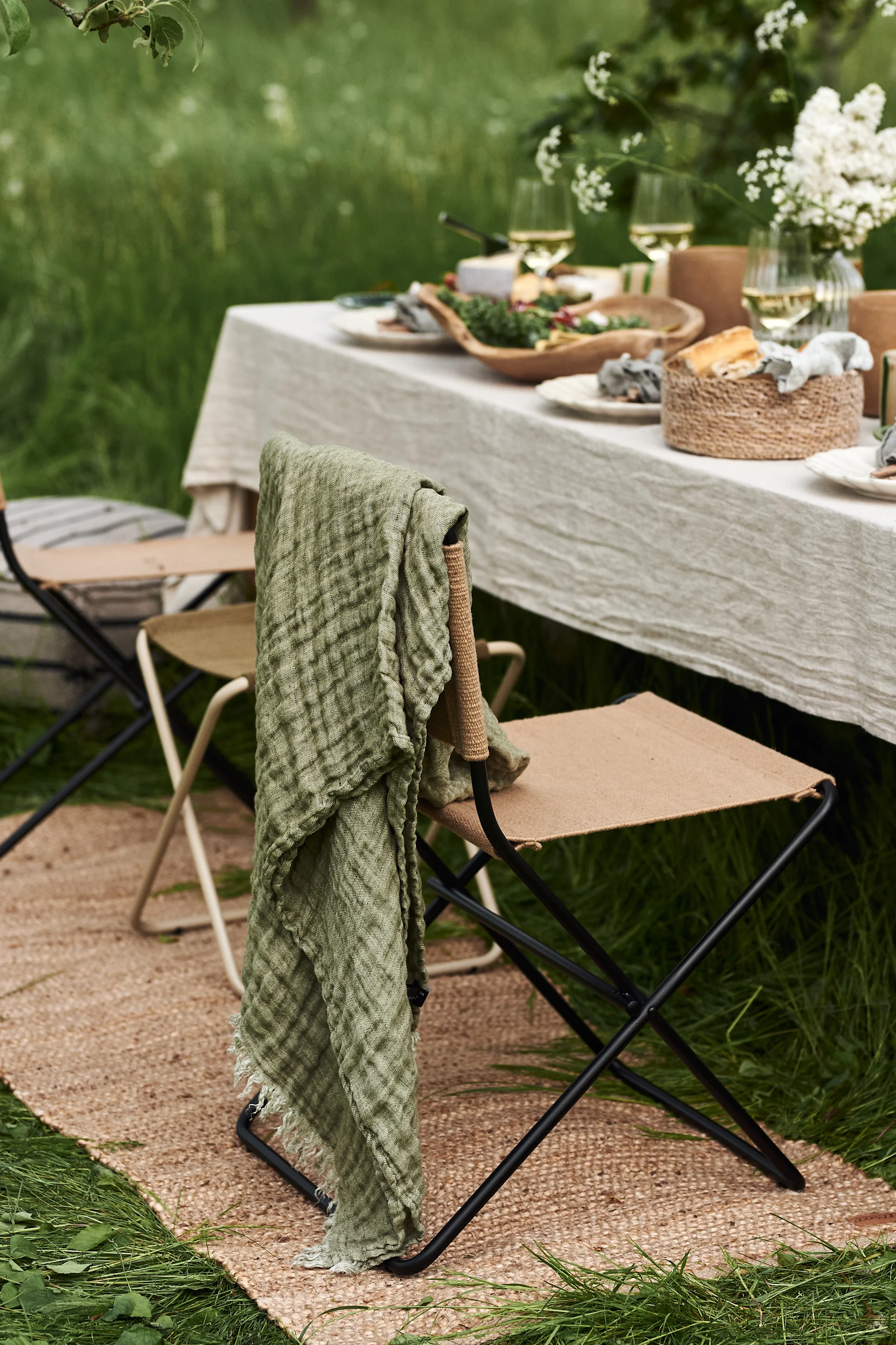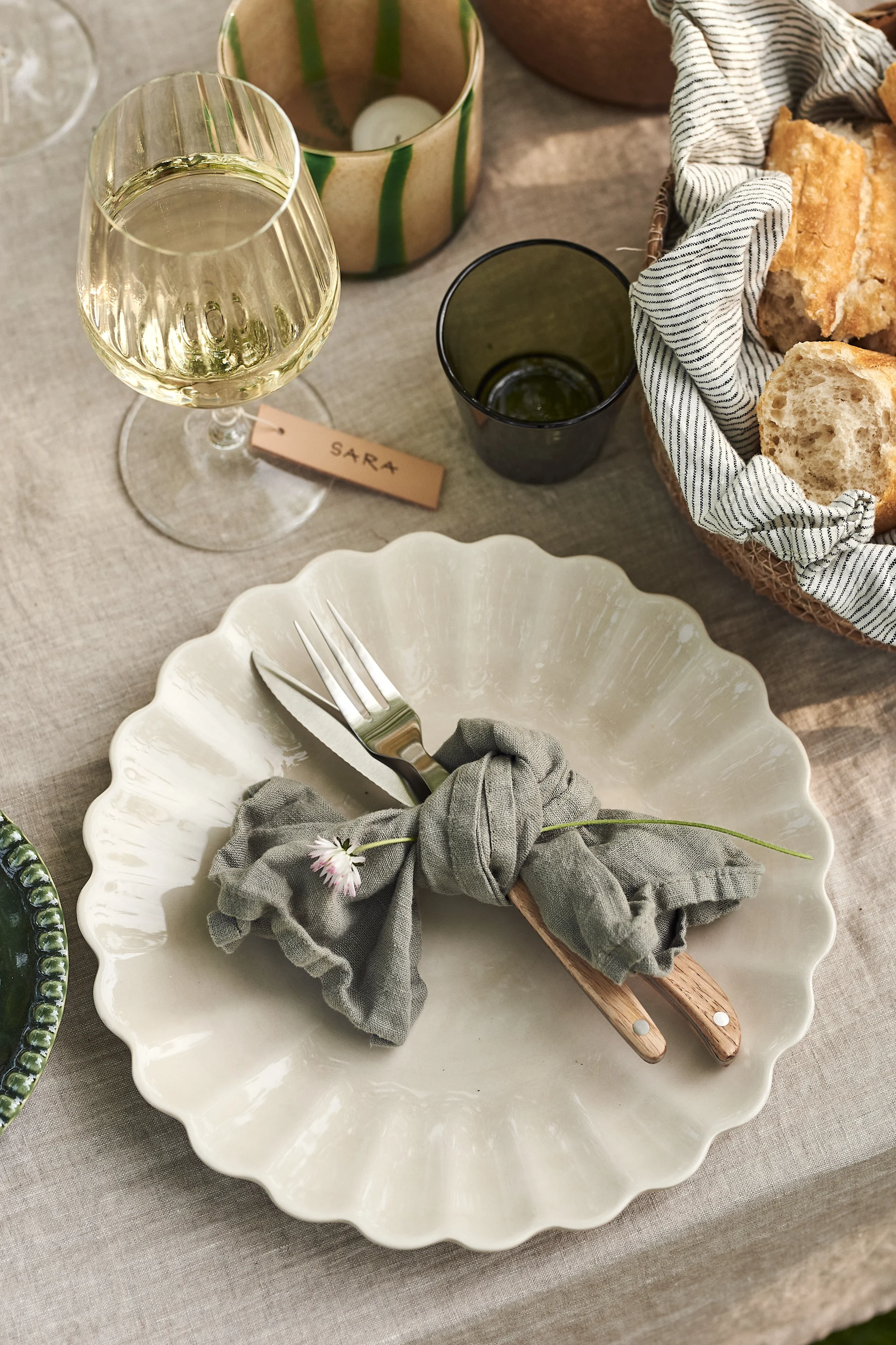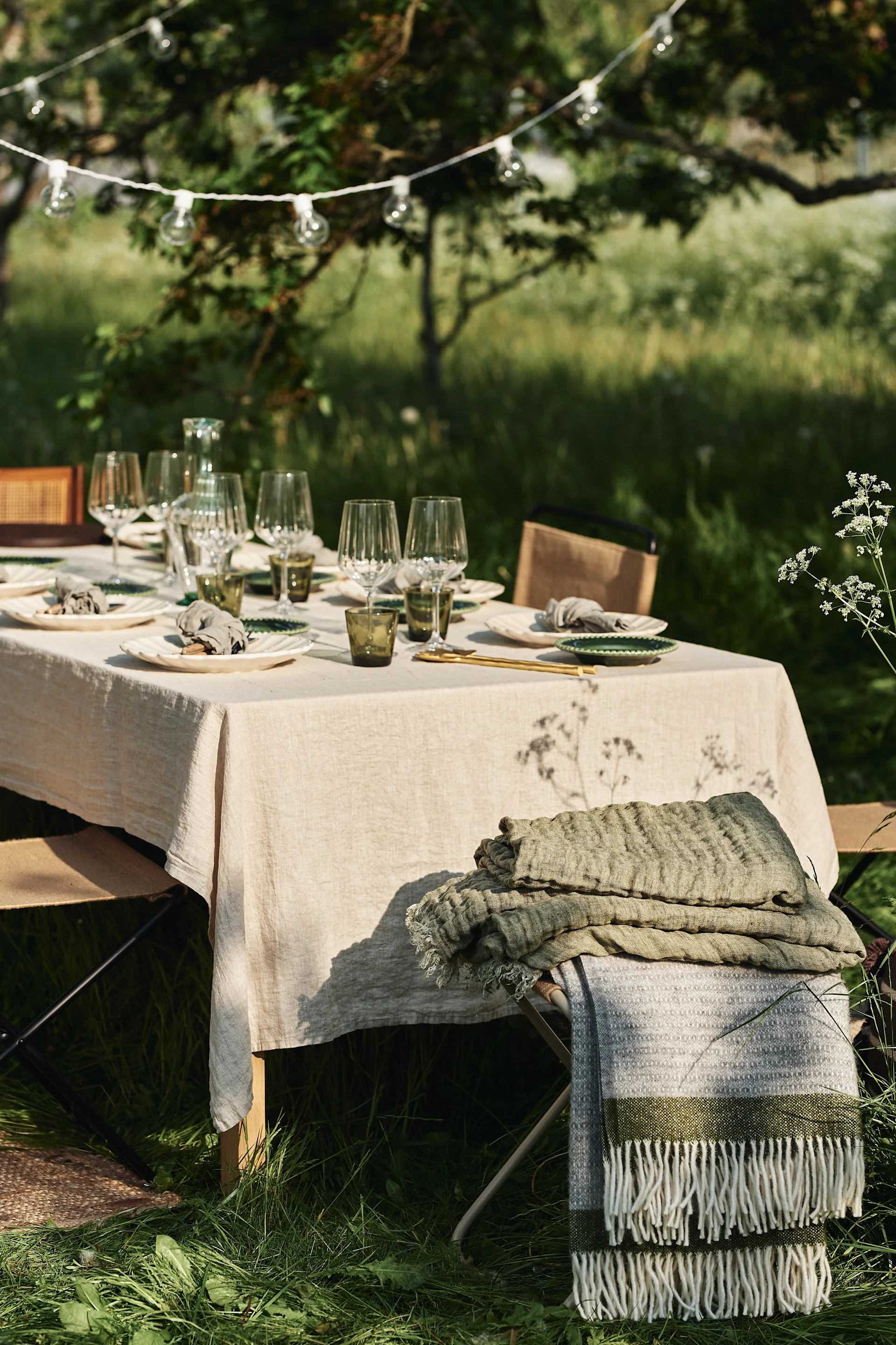 Kreieren Sie einen schönen Sommertisch im Garten mit einer natürlichen Leinentischdecke von Scandi Living als Basis und wählen Sie die Details nach Herzenslust dazu aus!