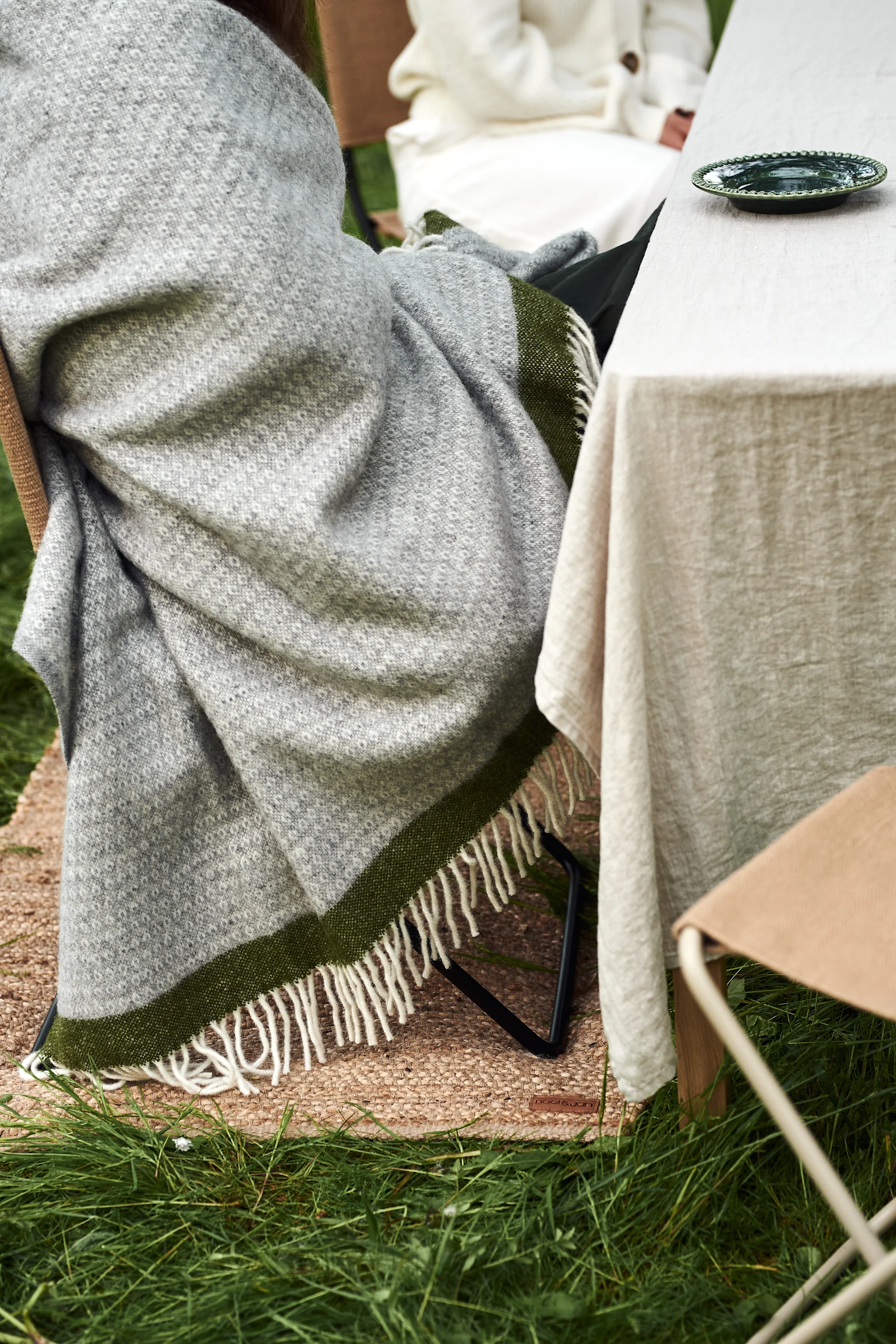 Schaffen Sie einen warmen und gemütlichen Sommertisch für Ihre Gartenparty, indem Sie ihn mit Decken, Kissen und sogar einem Teppich dekorieren. Hängen Sie eine Decke über die Stuhllehne oder platzieren Sie einen Stapel davon in einen Korb in der Nähe, damit sich Ihre Gäste in den späteren Stunden, wenn die Sonne untergegangen ist, aufwärmen können. Das schafft eine einladende Atmosphäre und gibt Ihren Gästen das Gefühl, umsorgt zu werden.