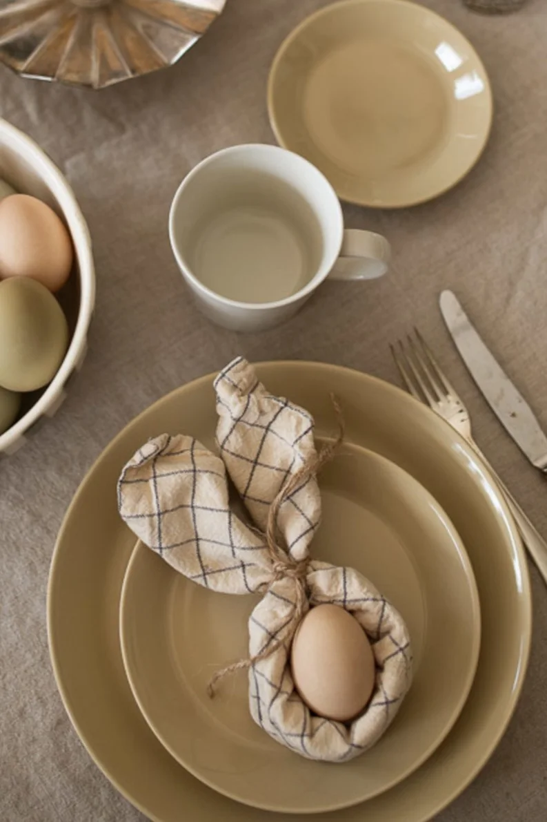 Ein liebevoll gedeckter Tisch lebt von kleinen Details. Eine besonders charmante Idee ist es, Servietten zu niedlichen Hasenohren oder Schmetterlingen zu falten. Verwenden Sie dazu Stoff- oder Papierservietten in Pastelltönen, die sich harmonisch in das Farbkonzept einfügen. Mit einer kleinen Schleife oder einem Namenskärtchen versehen, werden sie nicht nur zum praktischen, sondern auch zum dekorativen Highlight auf der Ostertafel.