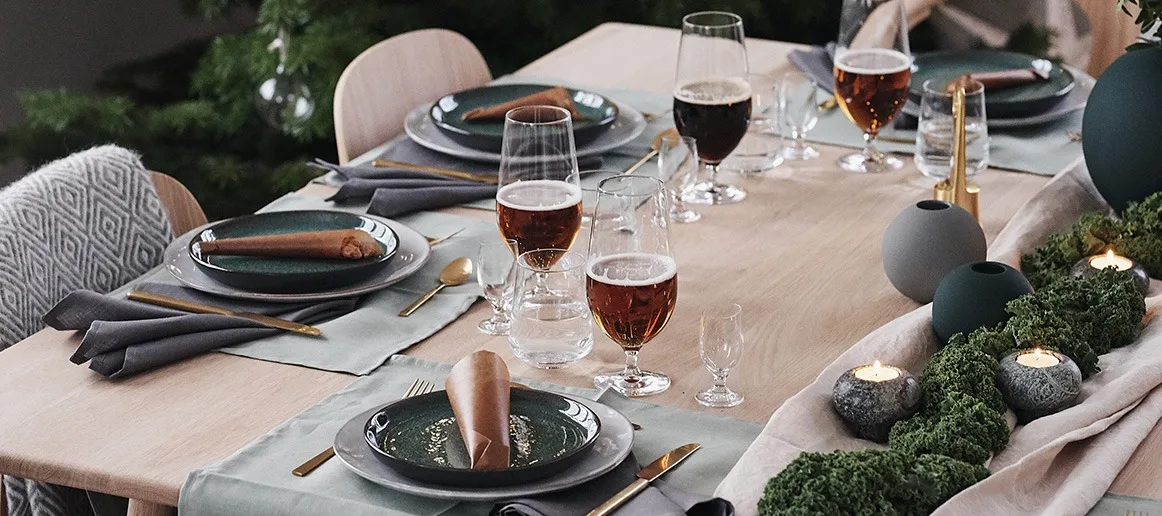 Mit der Porzellanserie Nordic Sand von Broste Copenhagen als Basis lassen sich leicht verschiedene Weihnachtsgedeck Varianten erstellen.