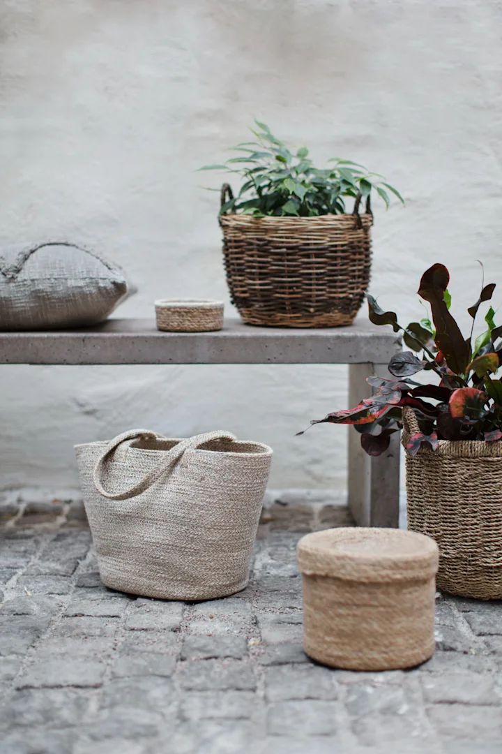 Pflanzen dürfen auf einem Boho-Balkon nicht fehlen – sie bringen Frische und Natürlichkeit. Nutzen Sie Pflanzenständer aus Bambus, Hängeampeln aus Makramee oder dekorative Körbe aus Seegras. Besonders stimmungsvoll wirken Sukkulenten, Gräser oder mediterrane Gewächse wie Lavendel oder Olivenbäumchen.