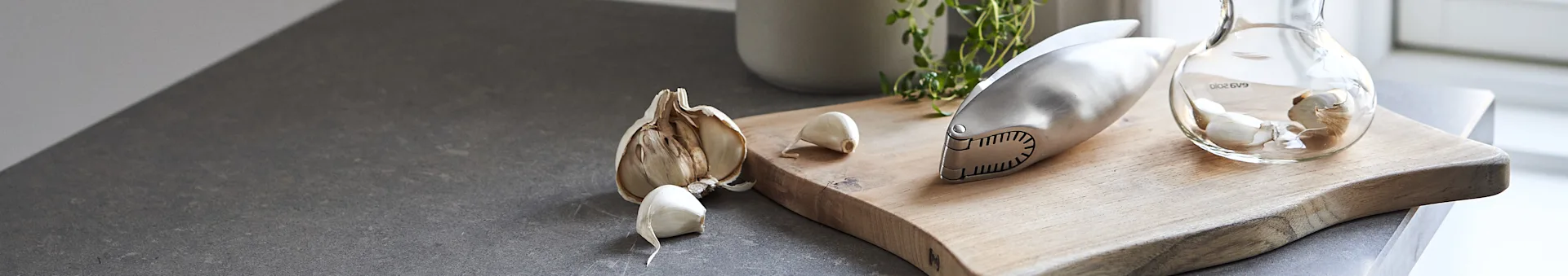 Zerkleinerter Knoblauch ist eine wichtige Zutat, um Ihren Gerichten die passende Würze zu verleihen. Gepresster Knoblauch passt hervorragend zu Tomatensaucen aber auch in Kombination mit frischem Gemüse in eine Wokpfanne. Auch für Tsatsiki und Salatsaucen empfiehlt sich das Pressen von Knoblauch in einer Knoblauchpresse.