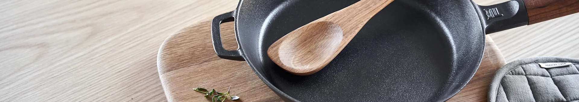 Eine Gusseisenpfanne ist eine Investition, an der Sie bei richtiger Pflege ein Leben lang Freude haben werden. Bratpfannen aus Gusseisen halten hohen Temperaturen stand und haben eine gleichmäßige Hitzeverteilung, wodurch sie sich hervorragend zum Braten von Fleisch und Gemüse eignen. Gusseisenpfannen können meist auf allen Herdarten auch auf Induktionskochfeldern angewendet werden.