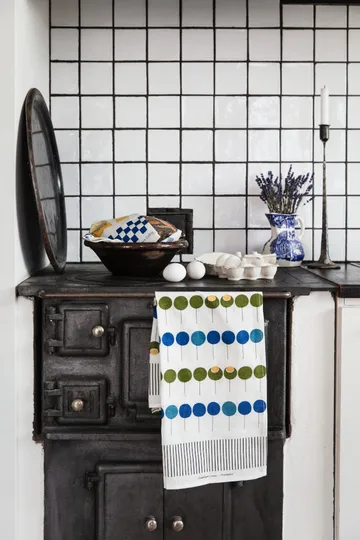 Das Pinnebär Geschirrtuch 47x70 cm von Almedahls ist aus einer feinen Mischung aus Leinen und Baumwolle hergestellt. Mit seinem schönen Muster, entworfen von Marianne Nilsson, wird es zu einem stilvollen und praktischen Detail in Ihrer Küche.