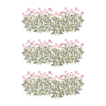 Ängsmark Stoff ist ein Baumwollstoff von Arvidssons textil mit einem Design von Minmona. Der Stoff wird auf Meterware verkauft und zeigt ein Muster aus Kleegewächsen, geeignet für Vorhänge, Tischdecken oder Kissenbezüge.