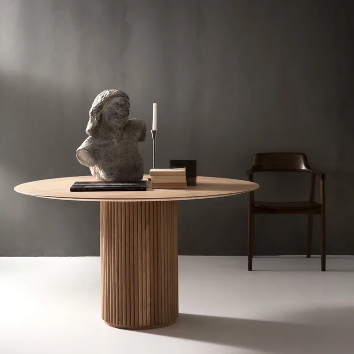 Der Palais Royal Esstisch von Asplund wurde von Anya Sebton und Eva Lilja Löwenhielm entworfen. Der Tisch lässt sich von historischen Umgebungen inspirieren, wie Paläste mit ihren majestätischen Säulen und Sockeln. Das halbkreisförmige Profil verleiht eine schöne Reliefstruktur und ergänzt einen minimalistischen skandinavischen Ausdruck, was jedem Abendessen eine verfeinerte Atmosphäre verleiht. Eine schöne Wahl für diejenigen, die historischen Charme mit nordischer Einfachheit kombinieren möchten.