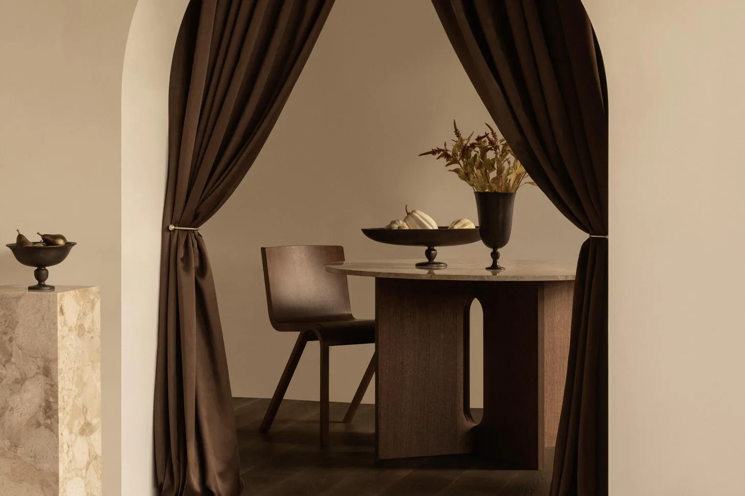 Der Androgyne Esstisch von Audo Copenhagen ist eine elegante Wahl für Ihren Essbereich, entworfen von Danielle Siggerud. Der Tisch kombiniert natürliche Materialien für einen beeindruckenden Look. Passen Sie ihn Ihrem Stil an mit einem Eichenholzgestell in entweder geöltem oder dunkel gefärbtem Finish. Die Tischplatte ist sowohl in Stein als auch in Holz erhältlich, was den Tisch zu einer stilvollen und flexiblen Option für verschiedene Innenräume macht.