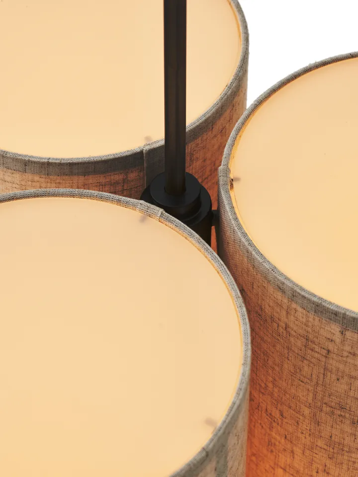 Hashira Cluster Pendelleuchte raw von Audo Copenhagen ist eine elegante Deckenleuchte aus der Hashira-Kollektion, entworfen von Norm Architects. Sie verbreitet ein weiches, angenehmes Licht durch den Leinenstoffschirm und schafft eine warme, ausgewogene Atmosphäre im Raum. Mit ihrer ausdrucksstarken Clusterform fungiert sie sowohl als Beleuchtung als auch als schönes Einrichtungsdetail über dem Esstisch oder im Wohnzimmer. Einfach zu montieren und flexibel zu platzieren, hebt sie die Stimmung des Raums und sorgt für ein angenehmes Allgemeinlicht.