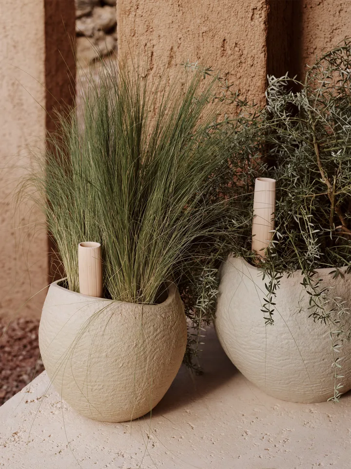 Die Hydrous Selbstbewässerung im 2er Pack von der dänischen Marke Audo Copenhagen ist ein zylinderförmiges Rohr aus Steinzeug. Das Rohr wird in die Blumenerde gesteckt und mit Wasser gefüllt. Eine Selbstbewässerung ist perfekt für diejenigen, die oft vergessen zu gießen, da die kluge Konstruktion des Rohrs das Wasser allmählich in die Erde sickern lässt, sobald diese austrocknet.