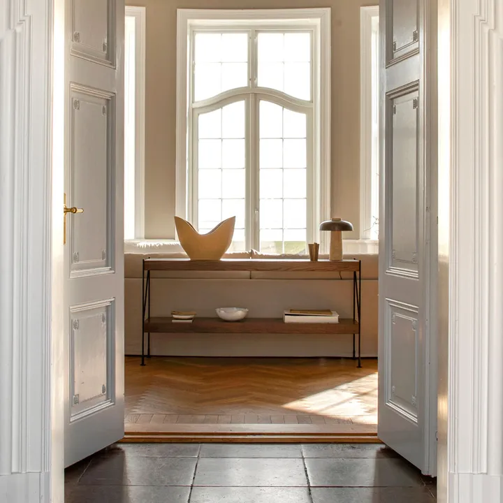 Das Zet Regalsystem von Audo Copenhagen, entworfen von kaschkasch, ist ein innovatives Regalsystem. Das System besteht aus Holzelementen und einem Metallrahmen, was eine flexible und anpassbare Gestaltung ermöglicht. Bauen Sie verschiedene Formationen und kreieren Sie genau den Ausdruck, den Sie sich in Ihrem Zuhause wünschen.
