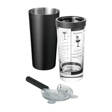 Schütteln Sie Cocktails wie ein Profi mit diesem Lounge Boston shaker-Set von blomus. Das Set, das aus einem Becher, einem Messglas und einem Cocktailsieb besteht, wird Ihr neuer Freund in der Küche oder in der Hausbar. Auf der Außenseite des Glases befinden sich verschiedene Markierungen für eine genaue Abmessung der Zutaten. Dieses Set eignet sich hervorragend als Geschenk.