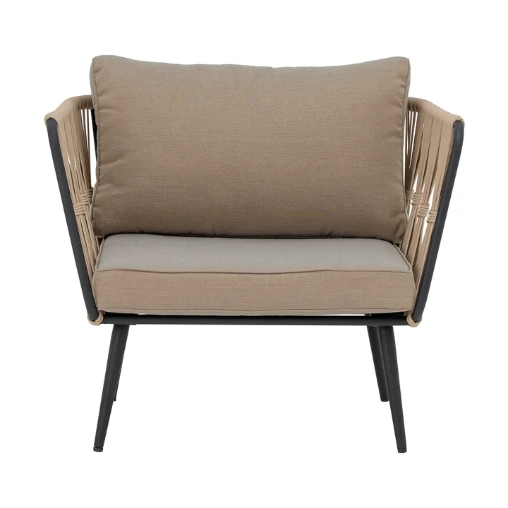 Der Pavone Loungesessel von Bloomingville ist im nordischen Stil mit schönen Details gestaltet. Er besteht aus pulverbeschichtetem Metall mit einem handgewebten Polyesterseil auf dem Rahmen. Die passenden Kissenbezüge sind aus Polyester gefertigt. Der Gartensessel eignet sich für alle Außenbereiche, aber durch den Schutz des Sessels vor direktem Sonnenlicht verlängert sich die Stofffarbe und die Haltbarkeit des Sessels. Genießen Sie einen schönen Outdoor-Loungesessel mit hohem Komfort.