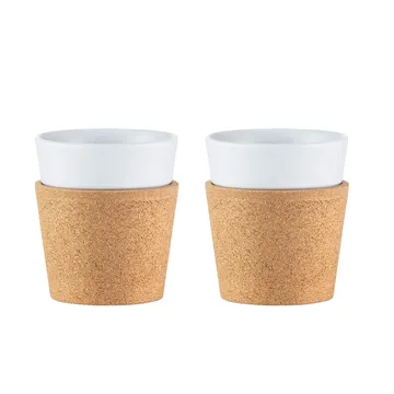 Servieren Sie heiße Getränke in den schicken und praktischen Bistro Becher mit Korkhülle von Bodum. Die Becher sind aus weißem Porzellan gefertigt und haben eine schützende, hitzebeständige Außenhülle aus natürlichem Kork. Die Becher sind in mehreren Größen erhältlich und kommen im 2er Pack – perfekt als Geschenk für Tee- oder Kaffeetrinker!