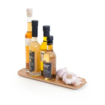 Das Bosign Holztablett leaf von der schwedischen Marke Bosign hat eine längliche ovale Form, die sich zur Aufbewahrung von Gewürzen und Ölen in der Küche oder Seife und Handcreme im Badezimmer eignet. Das Tablett ist wasser- und ölbeständig und hält langfristigem Verschütten von beispielsweise Seife und Spülmittel stand.