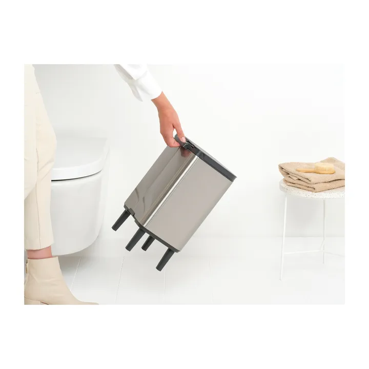 Bo Abfalleimer hoch 7 L von Brabantia ist eine praktische und clevere Lösung für den Haushalt. Die kompakte, platzsparende Form macht ihn leicht im Küchen- oder Hauswirtschaftsraum zu platzieren, und der flexible Deckel kann links, rechts oder von vorne geöffnet werden für einfache Handhabung. Mit 7 Litern Fassungsvermögen eignet er sich perfekt dort, wo der Platz begrenzt, aber Funktionalität erforderlich ist. Ideal für Haushalte, die einen unauffälligen, benutzerfreundlichen Abfalleimer wünschen, der den Alltag erleichtert.