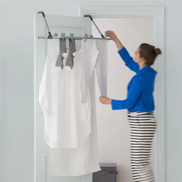 Haben Sie wenig Platz zum Aufhängen von Kleidung zum Trocknen? Dann ist der Brabantia Wäscheständer für Tür eine ausgezeichnete Wahl für Sie! Der hängende Wäscheständer besteht aus rostfreiem Stahl mit verstellbaren Armen, was ihn ideal macht, um ihn an Türen, Geländern oder Wänden aufzuhängen. Der kleine Wäscheständer eignet sich hervorragend, um Bügelwäsche oder empfindlichere Kleidungsstücke, die luftgetrocknet werden müssen, aufzuhängen. Weitere clevere Funktionen sind, dass er in verschiedenen Positionen verriegelt werden kann und dass er im zusammengefalteten Zustand minimal Platz einnimmt, wenn er nicht verwendet wird! Wählen Sie zwischen verschiedenen Farben.