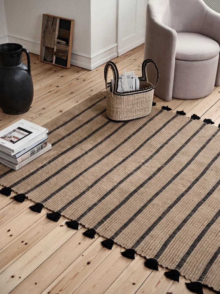 Der Ezra Teppich 70x140 cm von Broste Copenhagen ist aus Baumwolle und Jute gefertigt, was ein natürliches und langlebiges Gefühl vermittelt. Dieser Teppich aus der Ezra-Serie bietet eine einzigartige Kombination aus Komfort und Haltbarkeit, ideal um ein gemütliches Gefühl zu Hause zu schaffen.