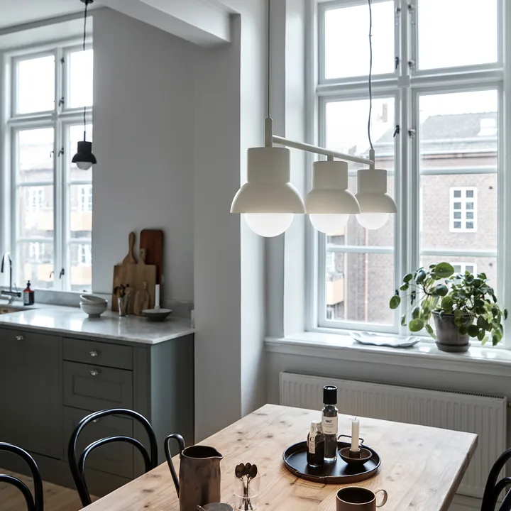 Down Long Pendelleuchte von CO Bankeryd ist eine elegante Deckenleuchte aus der Down-Serie, entworfen von Odda in Zusammenarbeit mit Care of Bankeryd. Mit ihren runden, weichen Formen und drei Lichtpunkten erzeugt sie ein warmes, einladendes Licht über dem Esstisch oder der Kücheninsel. Das Gestell aus Metall verleiht Stabilität und einen klaren Ausdruck, der sowohl ins Wohnzimmer als auch in den Essbereich passt, wo Sie einen Fokuspunkt wünschen, der sowohl beleuchtet als auch die Atmosphäre hebt. Eine zeitlose Pendelleuchte, die Abendessen und Zusammensein noch angenehmer macht.