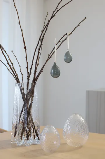Gry Ei Osteranhänger im 2er-Pack von dem schwedischen Cooee Design ist aus Glas mit einer taktilen und eleganten Oberfläche gefertigt, die zu einem harmonischen Ostern beiträgt. Sie passen perfekt zu den anderen Produkten der Gry-Serie, die von Tim Torp Hansen entworfen wurden. Die Osteranhänger werden mit einem beigefarbenen Seidenband geliefert.