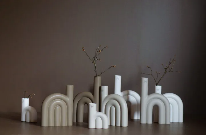 Rope Vase groß von DBKD ist eine skulpturale Vase mit sanft architektonischen Formen, inspiriert von Türen und Bögen. Die großzügige Größe und die ausgewogene Silhouette verleihen ihr zugleich Leichtigkeit und Kraft. Als eigenständiges Wohnaccessoire ist die Vase ebenso schön wie befüllt mit Zweigen oder opulenteren Sträußen. Die matte Oberfläche und die weichen Rundungen schaffen eine ruhige Präsenz, die in jeden Raum passt. Rope Vase von DBKD vereint skandinavisches Design, Funktion und Ästhetik in einer zeitlosen Form, die Blumenarrangements mit selbstverständlicher Eleganz hervorhebt.