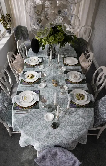 Die Strawberry Thief Tischdecke 150x300 cm von Ekelund Linneväveri wird in Horred aus 100% biologischer Baumwolle gewebt. Entworfen von William Morris, bietet diese Tischdecke eine nachhaltige und elegante Lösung für Ihre Tischdekoration. Perfekt, um eine einladende Atmosphäre im Zuhause zu schaffen.