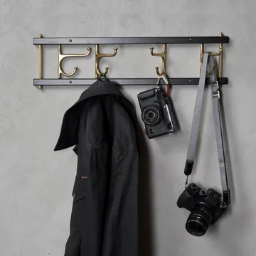 Maxi 4 Dekorativ Hakenleiste von Essem Design ist eine robuste und stilvolle Holzleiste mit vier gegossenen Messinghaken, die bei Nichtgebrauch elegant eingeklappt werden können. Diese klassische Hakenleiste, entworfen von Gunnar Bolin in den 1960er Jahren, ist bekannt für ihre Langlebigkeit und praktische Funktion – perfekt für clevere Aufbewahrung in kleineren Räumen. Hergestellt in Anderstorp aus lackiertem Massivholz und Messing, ist die Hakenleiste aus der Serie Dekorativ gleichermaßen nützlich im Flur, Schlafzimmer oder in der Küche für alles von Jacken und Taschen bis hin zu Handtüchern. Obwohl die Produktion vor 20 Jahren eingestellt wurde, ist die Nachfrage aufgrund des zeitlosen Designs und der smarten Funktionalität stark gestiegen, was Maxi 4 zu einer beliebten Wahl für alle macht, die sowohl Qualität als auch Platzersparnis suchen