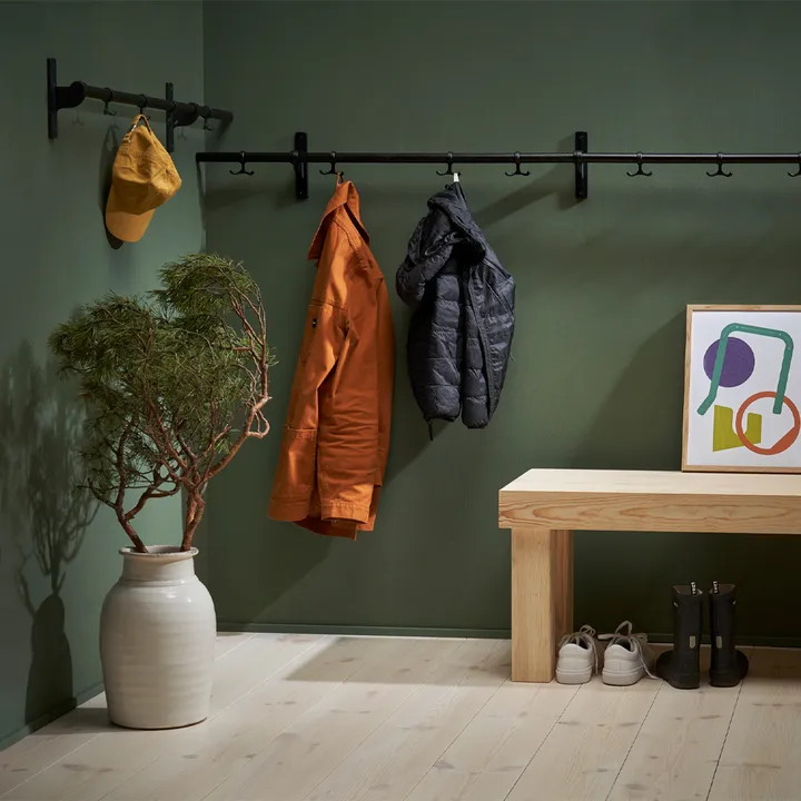 Die Nostalgi Hakenleiste von Essem Design ist eine zeitlose Hommage an Gunnar Bolins ursprüngliches Design aus dem Jahr 1937. Hergestellt aus recyceltem Aluminium und Holz, kombiniert sie Funktionalität mit schwedischer Designtradition. Diese Hakenleiste kann einfach mit Erweiterungsteilen verlängert werden, was eine flexible und praktische Nutzung im Heim bietet. Perfekt, um Ihre Wände zu organisieren und ihnen Persönlichkeit zu verleihen. Entdecken Sie, warum sie ein Klassiker in der schwedischen Möbelgeschichte geworden ist.