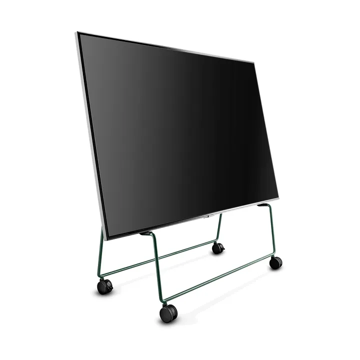 Das Carry TV-Stativ mit Rollen von Eva Solo verleiht Ihrem Wohnzimmer Flexibilität durch die einfache Bewegung des Fernsehers. Verwenden Sie das Stativ, um neue Einrichtungsmöglichkeiten zu schaffen oder als Raumteiler. Das funktionale Design integriert sich nahtlos mit dem Flachbildschirm und hebt den Fernseher vom Boden für eine schwebende Illusion. Geeignet für TV-Bildschirme zwischen 40 und 65 Zoll. Zwei Lederbänder hinten bieten zusätzliche Stabilität und Sicherheit für Ihr Gerät.