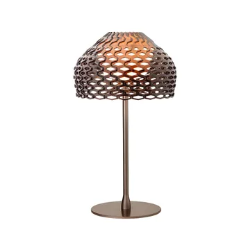 Tatou T1 Tischleuchte von Flos wurde von Patricia Urquiola entworfen. Der Name Tatou stammt vom französischen Wort für Gürteltier und spiegelt die schützende Form der Leuchte wider. Die Leuchte verhindert direktes Licht und verbreitet stattdessen ein weiches und angenehmes Leuchten, das eine behagliche Atmosphäre in Ihrem Zuhause schafft.