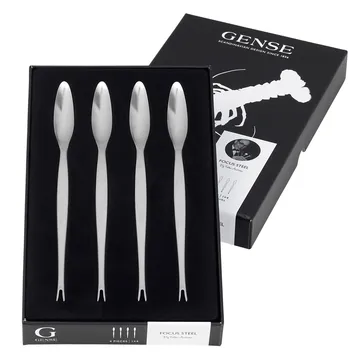 Das Focus de Luxe Besteck - hier eine Schalentiergabel im 4er Pack - ist ein wahrer schwedischer Designklassiker von Gense. In den 1950er Jahren von Folke Arström designt, ist Focus de Luxe schon immer ein begehrtes Sammlerstück unter Designinteressierten gewesen. Die New York Times hat dieses Besteck von Gense als eines der „100 best designed products in modern time” auserkoren.