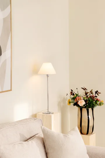 Iris 20 Lampenschirm von Globen Lighting ist handgefertigt aus Baumwolle mit einem oberen Ring im passenden Stoff und einem weißen Diffusor, der ein weiches und angenehmes Licht erzeugt. Mit seiner E14-Klobefassung wird der Schirm einfach um die Lichtquelle befestigt. Gestalten Sie eine persönliche Tischlampe, indem Sie ihn mit einem schönen Lampenfuß kombinieren – perfekt im Fenster, auf dem Nachttisch oder als stimmungsvolles Detail im Bücherregal.