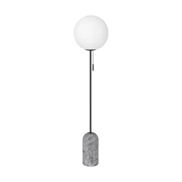 Torrano Stehleuchte von Globen Lighting ist eine elegante Stehleuchte, entworfen von Patrick Hall. Der massive Fuß aus massivem Marmor trifft auf einen schlanken Stab aus gebürstetem messingfarbigem Metall und wird von einer Glasglocke aus weißem Opalglas gekrönt. Zusammen schaffen die runden Formen und der solide Stein einen schönen Kontrast, der dem Raum Charakter verleiht. Platzieren Sie die Torrano neben dem Sofa oder in einer Ecke für warmes, gemütliches Licht, das sowohl beleuchtet als auch als schönes Einrichtungsdetail wirkt