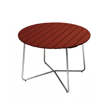 9A Esstisch von Grythyttan Stålmöbler ist ein runder Tisch, entworfen von Artur Lindqvist und Teil der Klassiker-Serie. Der Tisch ist aus strapazierfähigem Stahl gefertigt und eignet sich ebenso gut für die Terrasse wie für die Laube, wo er einen eleganten und einladenden Treffpunkt schafft. Die robuste Konstruktion sorgt für lange Haltbarkeit, während das schlicht-zeitlose Design mit verschiedenen Gartenmöbeln harmoniert, beispielsweise A2 oder Stol 1. Der 9A Esstisch verbindet traditionelles schwedisches Handwerk mit moderner Funktionalität und ist perfekt für entspannte Stunden und gemütliche Abendessen im Freien.