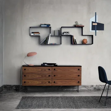 • Materialien: Walnussfurnier, Stahl, Walnuss, Laminat Finish: Pulverbeschichtet, lackiert