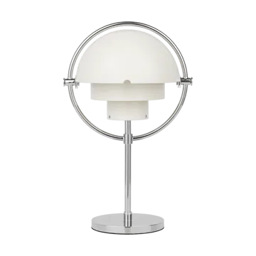 Die Multi-Lite portable Leuchte von Gubi ist eine kleinere Version der beliebten Tischleuchte mit dem gleichen Namen. Die einzigartige Konstruktion mit mehreren Schirmen, die nach Bedarf ausgerichtet werden können, bietet Ihnen eine flexible und tragbare Tischleuchte die vielseitig einsetzar ist. Um zu verhindern, dass man vom Licht geblendet wird, ist diese kleinere Version der Multi-Lite mit einem Blendschutz in den beiden obersten Schirmen konstruiert. Wenn die Leuchte voll aufgeladen ist, kann sie 6,5 Stunden bei voller Leistung leuchten. Es dauert 6 Stunden, um den Akku auf 100% und 3 Stunden, um 80% der Akkukapazität zu erreichen. Die Helligkeit kann in drei Stufen geregelt und mit einem Touchdimmer an der Seite des Lampenschirms gesteuert werden.