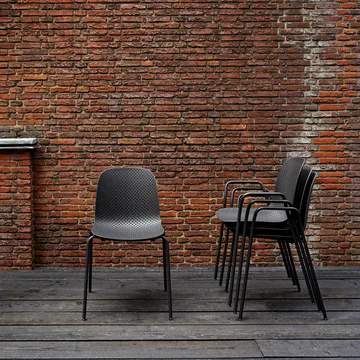 Der 13Eighty Stuhl von HAY, entworfen von Scholten & Baijings, ist ein stapelbarer Stuhl mit einer Polypropylen-Schale, die mit kleinen Löchern perforiert ist. Diese verleihen dem Stuhl nicht nur ein einzigartiges Aussehen, sondern machen es auch praktisch für den Außeneinsatz, indem sie ermöglichen, dass Regenwasser abläuft. Perfekt für sowohl Innen- als auch Außenumgebungen.