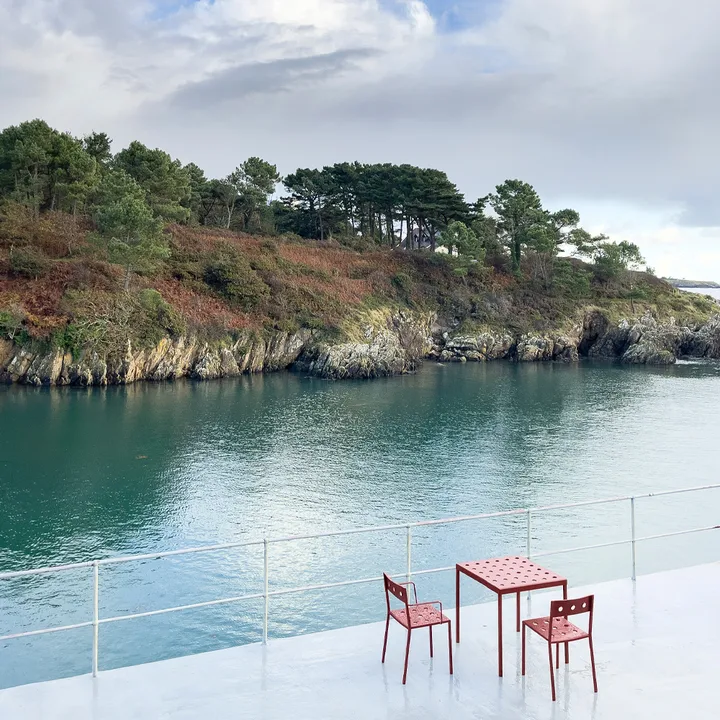 Der Balcony Stuhl von HAY wurde von Erwan und Ronan Bouroullec entworfen und ist Teil der Balcony-Kollektion. Der Stuhl hat ein quadratisches Design mit abgerundeten Löchern, was sowohl ein einzigartiges Aussehen als auch zusätzliche Stabilität verleiht. Aus pulverbeschichtetem Stahl gefertigt und mit einer Außenprimer beschichtet, ist er dank seiner Haltbarkeit ideal für Balkone, Gärten und andere Außenumgebungen.