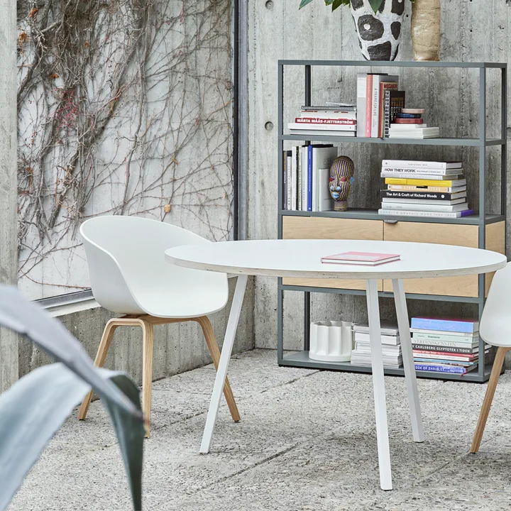 Der Loop Stand Esstisch rund von HAY wurde von Leif Jørgensen entworfen. Mit seiner markanten Beinkonstruktion, die direkt in die Tischplatte eingearbeitet ist, bietet dieser Esstisch eine praktische und langlebige Lösung für Ihr Zuhause. Für zusätzliche Unterstützung bei der Auswahl von Tischplatten über 200 cm wird der Loop Stand Support empfohlen, um eventuelles Nachgeben oder Durchbiegen im Laufe der Zeit zu verhindern.