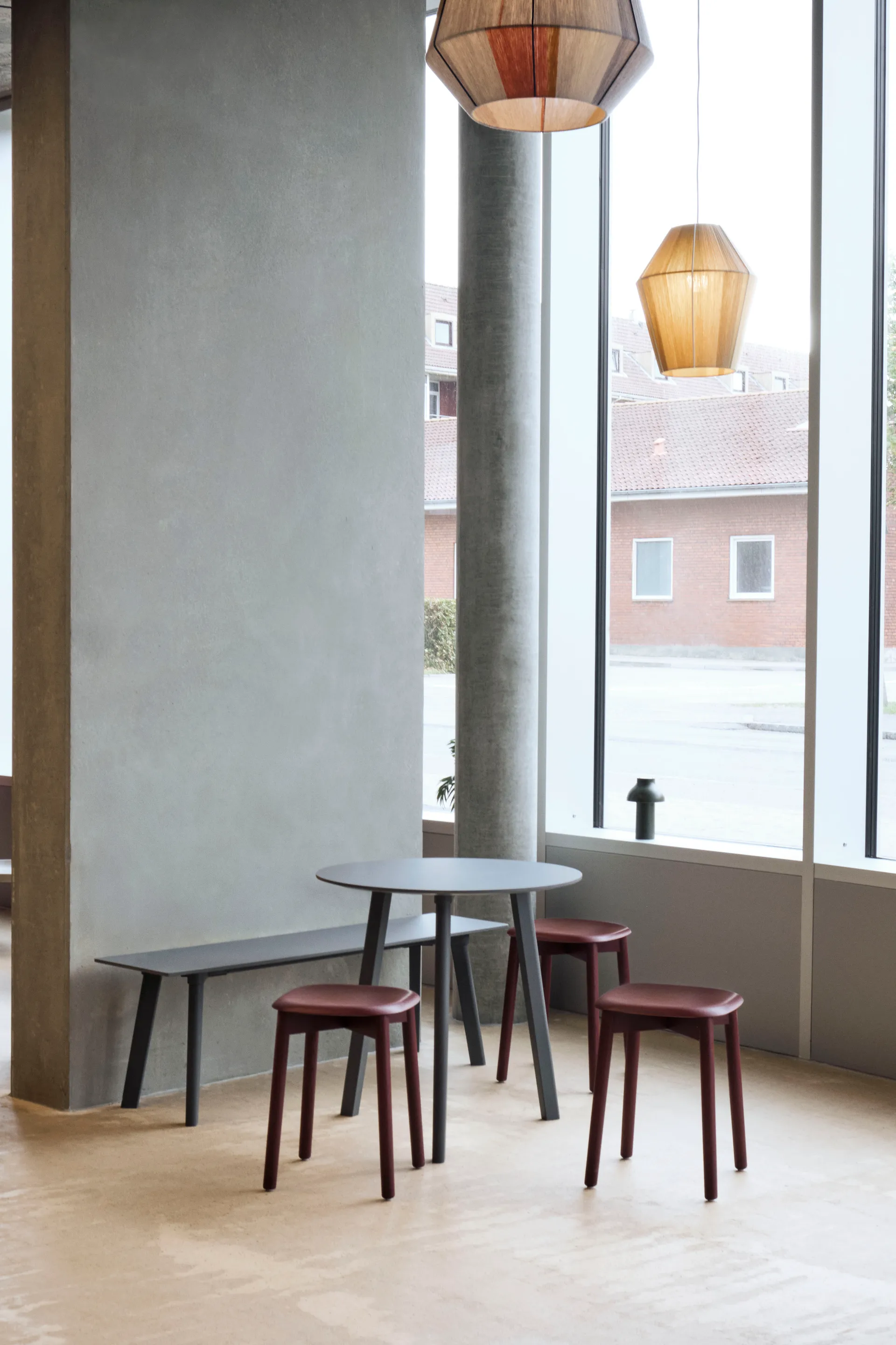 Die PC Portable No 2 Tischlampe von HAY ist von Pierre Charpin entworfen und eignet sich sowohl für drinnen als auch draußen. Die Lampe besteht aus 95% recyceltem Kunststoff, ist kratzfest und verfügt über eine verborgene Lichtquelle mit Dimmerfunktion für stimmungsvolles oder gerichtetes Licht. Nach einer vollständigen Ladung über USB-C hält der Akku mindestens 10 Stunden.