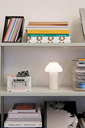 PC Portable Tischleuchte von HAY ist eine tragbare, kompakte und spritzwassergeschützte Leuchte, entworfen von Pierre Charpin. Mit bis zu acht Stunden Licht aus einem wiederaufladbaren Akku bietet sie flexible Beleuchtung dort, wo Sie sie brauchen – auf dem Balkon, in der Leseecke oder als stimmungsvolles Licht am Esstisch. Die Basis aus spritzgegossenem ABS und der transparente PP-Diffusor verbreiten ein weiches, angenehmes Licht, während der opake Lampenschirm für gleichmäßige Ausleuchtung sorgt. Eine clevere und leicht platzierbare Lösung für das Zuhause, die gutes Design mit praktischer Funktion kombiniert.